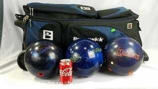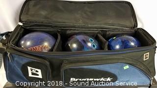 Lot #0061: Brunswick Bowling Bag w/(3) 15lb Bowling Balls