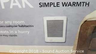 Install Dimensions: 9" W x 12" H x 1" D. heats Approx. 175 Sq. Ft. Room. It has been used. Comes with original box.
