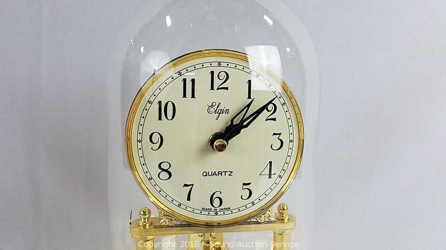 Lot #0259: Elgin Quartz Anniversary Clock with Glass Dome