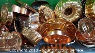 Lot #0124: Huge Tote Loaded w/Copper Cake/Gelatin Molds