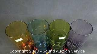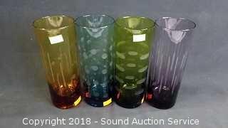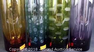 Lot #0130: Colorful Crystal Stemware, Drink Glasses & Vase