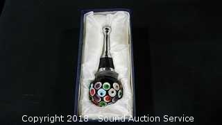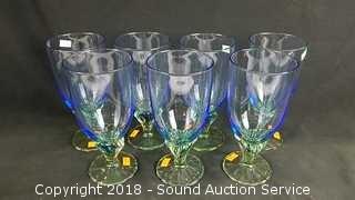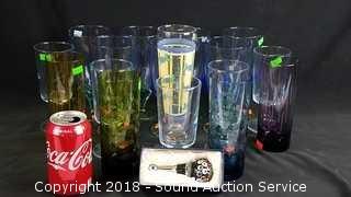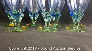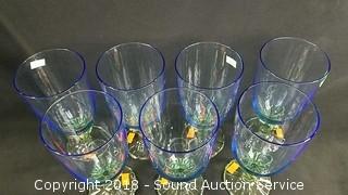 Also comes with Murano art glass bottle stopper in original box. Includes: (7) Blue & Green 7-1/2" Crystal Wine Glasses, 5 Blue Crystal Glasses, 4 Colorful 7" Highball Glasses, and Floral Vase.