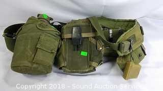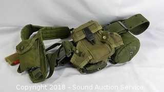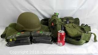 Includes: 66" x 84" Wool Blanket, 7 Magazines, Package of Dressing, Kevlar Helmet, and 2 Large Belts w/Pouches & Canteen.