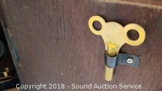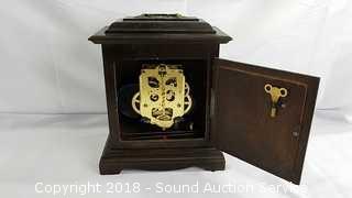 Lot #0131: Vtg. 8 Day Wooden Mantle Clock w/Key