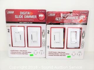 Lot #0407: (2) 2-Packs Feit Digital Slide Dimmer Switches