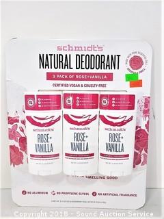 Lot #0396: 3-Pack Schmidt's Rose+Vanilla Natural Deodorant