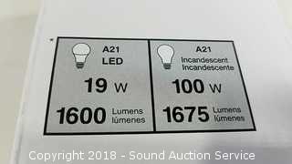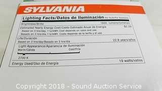 Replaces 100 watt, only uses 19 watt. 1600 lumens, 2700k warm color. 22+ year life span. All are in original box.