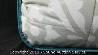 98" x 96". Hypoallergenic polyester fiber fill. Grey Print Color. In original package.