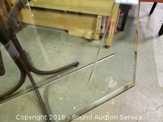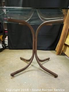 Lot #0018: Cut Glass Top Metal Base Octagon Table