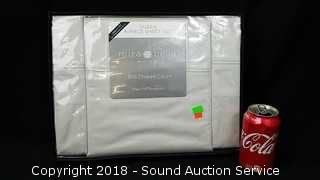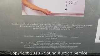 385 thread count. Fits mattresses 9" to 22" thick. 1 flat, 1 fitted, 4 pillowcases. Morning Dove/Grey Color.