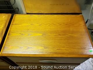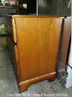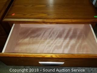 In excellent condition, nice finish, aluminum drawer pulls. Approx. 28" H, 28" W, 17" D.