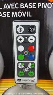 Comes with remote and 15 AA batteries.