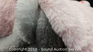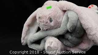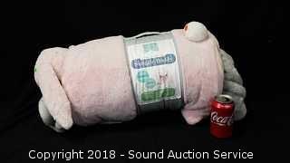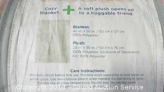 Includes: Soft Huggable Plush Bunny Pillow (Has a stain) and Cozy Blanket. Pillow is 20" x 30". Blanket is 40" x 50".