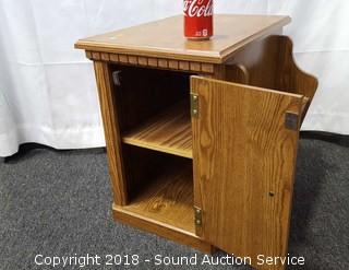 Lot #0002: Wood Grain Finish End Table w/Magazine Rack