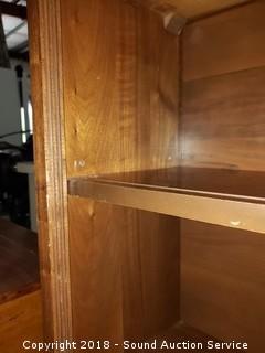 One shelf is adjustable. Approx. 41" H, 36" W, 11-1/2" D.