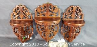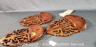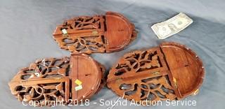 Lot #0273: 3 Carved Wooden Collapsible Knick Knack Shelves