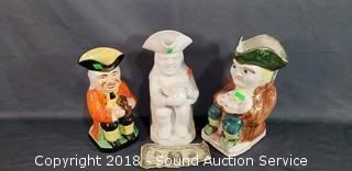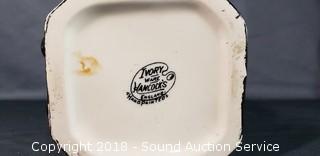 One is hand painted, with crazing. One is marked Ivory Ware Hancock's, hand painted. Other is marked "LW" on the bottom. Approx. 8-1/2" to 9-1/2" H.