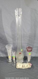 Lot #0258: 4 Vtg. Crystal & Clear Glass Stem Vases