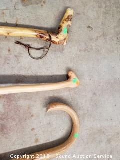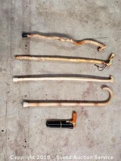 Lot #0354: 4 Wooden Canes & 1 Folding Cane