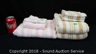 Lot #0040: 8pc. Brown & Pink Stripe Bath Towel Set