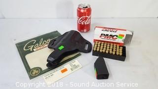 Includes: Right Handed Fletch High Ride Belt Holster, and 44 Cartridges of 9mm Luger 115 Grain Ammunition.