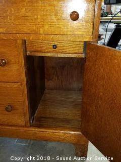 Skeleton key lock, comes with key, solid wood construction. Approx. 46" H, 32" W, 15-1/2" D.