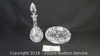 Lot #0315: Beautiful Cut Crystal Decanter & Console Bowl