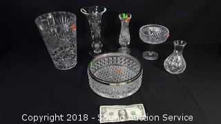 Lot #0314: Cut Crystal & Glass Vases, Compote & Fruit Bowl