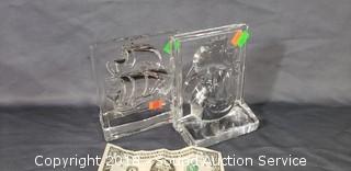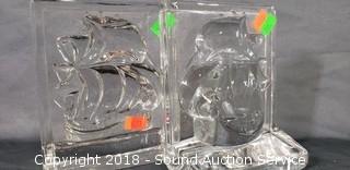 Lot #0283: Glass Ship Cast Bookends