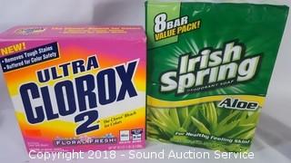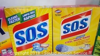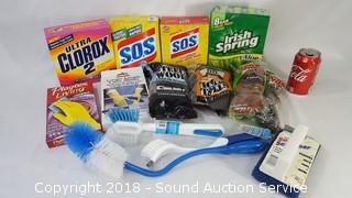 Includes: Scrubbing Pads, Steel Wool, Latex Gloves, SOS Pads, Scrubbing Brushes, and 8 Bars of Irish Spring Soap.