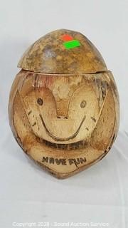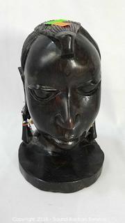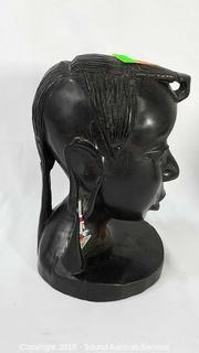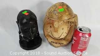 Lot #0050: Ironwood Tribal Bust & Carved Coconut Container