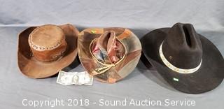 Includes: Charlie Horse XXX Fur Blend Custom Hat w/Native Beaded & Buffalo Coin Nickel Accent Size 7-1/2, and 2 Hand Crafted Leather Wide Brimmed Hats.