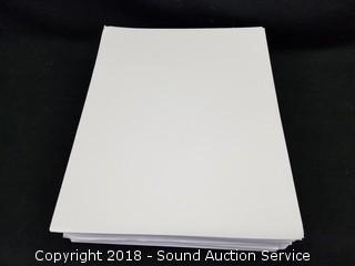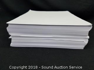 Legal pads are 8.5" x 11-3/4". Printer paper is 8.5" x 11". Approx. 400 sheets of legal pad paper. Over 1000 sheets of printer paper.
