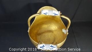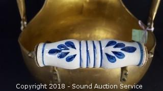 Approx. 14" H. One is brass with porcelain handles, other is painted black.
