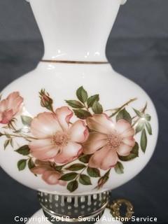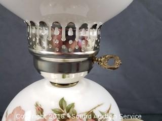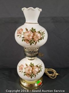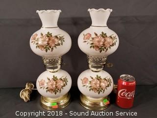 Lot #0381: Pair of Vtg. Glass Globe Floral Table Lamps