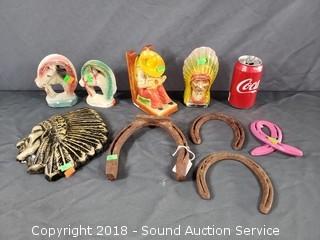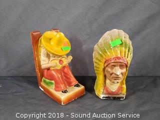 Lot #0392: Vtg. Cowboy & Indian Theme Chalk Sculptures