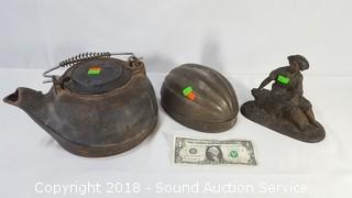 Lot #0309: Vtg Tea Kettle, Bronze Figure & Melon Mold
