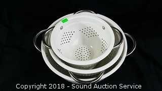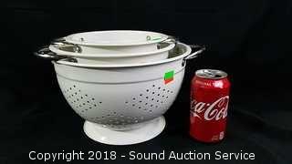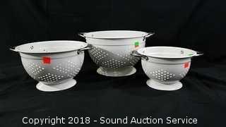 Lot #0269: 3pc. Enamelware Colander Set - 7" to 10"