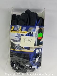 Lot #0298: 8-Pack Wells Lamont Foam Latex Work Gloves - L