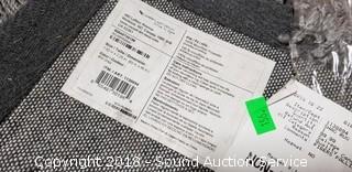 100% Microfiber Polyester. 2" Shag. Mild grey color.