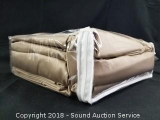 400 thread count. 1 flat, 1 fitted, 4 pillowcases. Crockery color (Bronze coppery color).