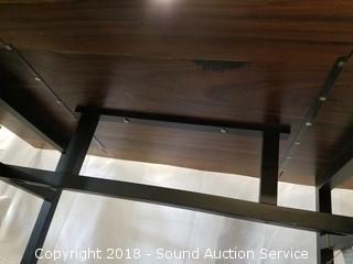 Retail $699.99. Approx. 30" H, 76-1/2" L, 42-1/2" W, 1-1/2" thick. Black wooden base.