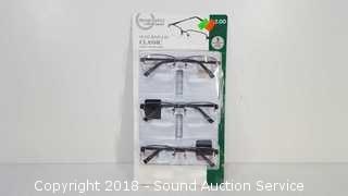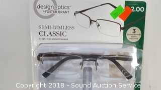 Lot #0382: Foster Grant +2.0 Semi-Rimless Reading Glasses
