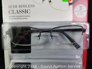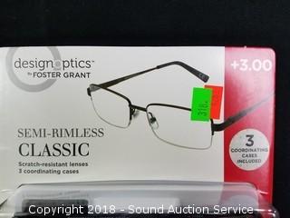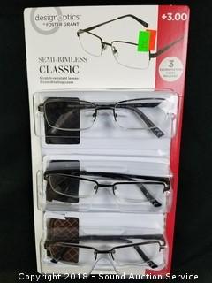 Lot #0318: Foster Grant +3.0 Semi Rimless Reading Glasses