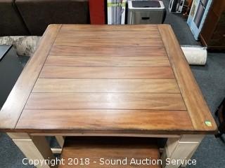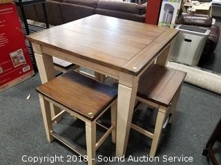 Approx. 36" H, 36" square. Has matching stool style chairs.