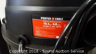 By Porter Cable. Does not look like it has ever been used. Comes with all the filters and attachments.