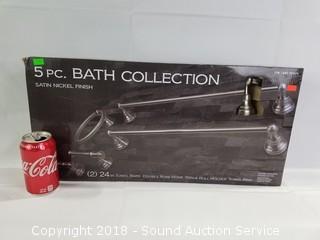Lot #0353: NIP 5pc. Satin Nickel Finish Bathroom Hardware Kit