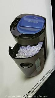 Comes in original box. 12 sheet capacity, pullout waste basket, shreds credit cards.