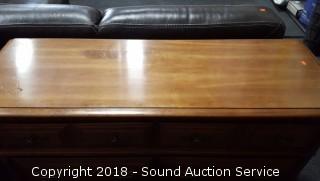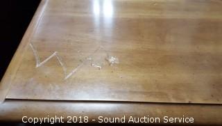 Has a large scratch on the top. Approx. 32" H, 52" W, 18" D.