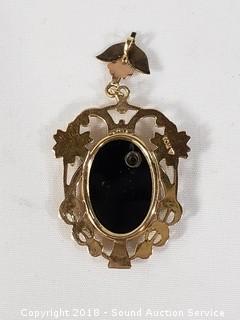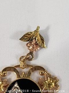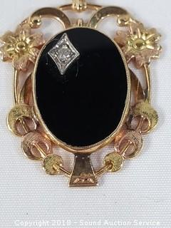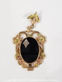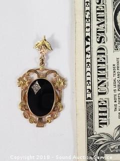 Lot #0412: 10k Gold, Onyx & Diamond Pendant